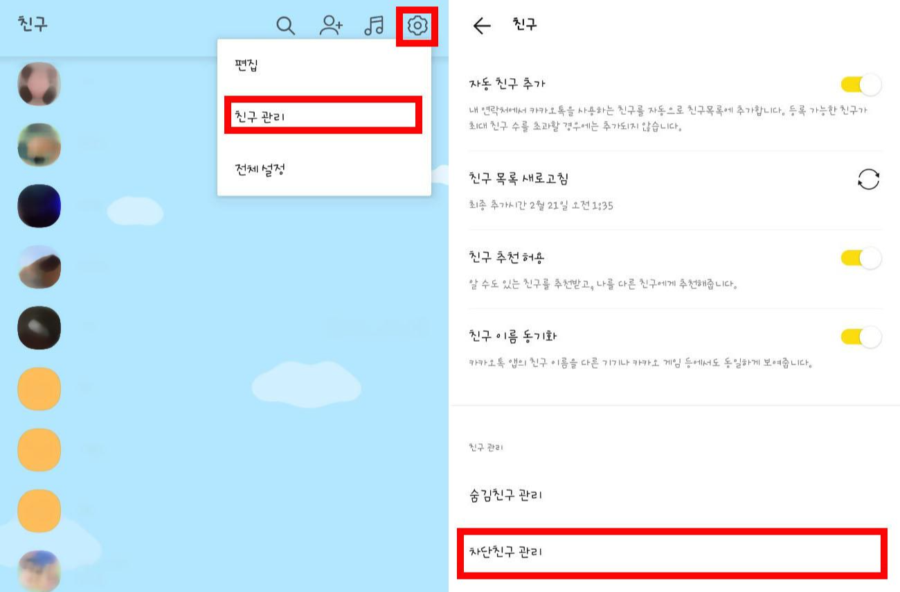 카톡 친구 삭제, 차단 방법 및 복구